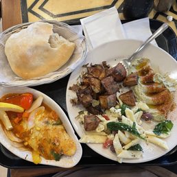 This place is a little on the causal side and the food is definitely tasty! I got the falafel wrap with the side of the pasta salad and both were really good. It can be a little confusing on what to order but the portion sizes are huge and the staff is happy to answer questions. We were checked on to make sure our food was good and we were enjoying our meal which I think made our experience even better!